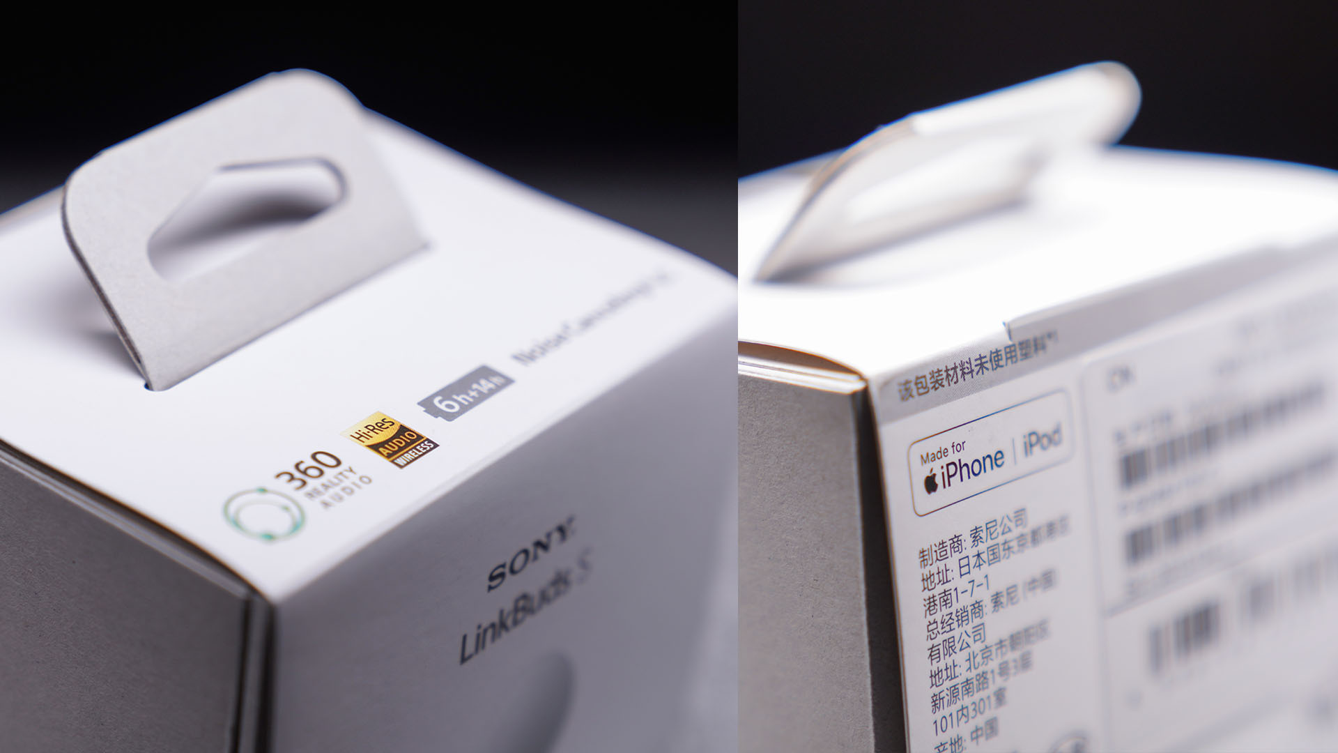 在硬卡纸原料的包装盒盖的正面,凹印了LinkBuds S产品称号,连续此前中听式耳机WF-1000XM4 的包装风格,但包装盒内部采用了全新的抽屉式规划,令人眼前一亮。
